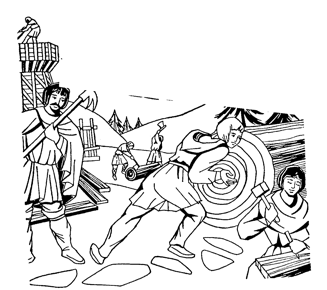 Pronto su decisión toma agarre, equipos de artesanos y de leñadores se pusieron a trabajar en la montaña salvaje, recubierta por el bosque, resonando el ruido de las hachas, del movimiento de los carros de bueyes llenos de piedras.