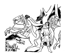 Mientras que todos los pobres del contorno cantan con elogio la dulzura y generosidad de la esposa del duque, su marido, fiero soldado, continua su vida de caballero, de cazas y combates y suscita más miedo que admiración.