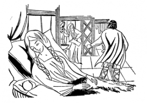 Muchos días transcurrieron sin que el duque consintiera mirar a su hija. Berewínda se inquietaba, con su seguridad, al verlo recaer en su genio feroz, pero abrigaba firmemente la esperanza de que al crecer el bebé conquistaría el corazón de su padre. Conocía, en el presente, otro tormento: su hijita tenia los párpados entumecidos y cuando los abría, sus anchas pupilas, de color todavía indeciso, no reaccionaban ni al resplandor de la lamparilla de mariposa, ni incluso al rayo de sol o a la antorcha de resina. Sus sirvientes le habían asegurado que la neonata no distinguía la luz pero su angustia persistía y, a escondidas de su marido, hizo llamar a su antiguo médico. Este se percató enseguida de que la hija de la mujer del señor feudal era ciega de nacimiento y no vería jamás la claridad del día, pero necesitó un rato para decirle toda la verdad a los desdichados padres. El duque mientras tanto, había tenido noticia de su llegada y se reunió rápidamente en la habitación de Bereswinda. El respeto que inspiraba el señor al anciano médico lo llevó a apiadarse. ¿qué ocurriría si Aldarico se daba cuenta de su engaño? Más valdría no ocultarlo, aunque la duquesa pasara por santa, capaz de soportar los peores reveses del destino (los médicos en aquel tiempo percibían enormes salarios, pero pobres de ellos si el enfermo que pertenecía a una familia pudiente y vengativa moría: corrían el riesgo de ser castigados con la gleba).