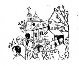 El peregrino se abre paso con alegría sobre el tapiz resbaladizo de las agujas de pino, escalando las rocas cubiertas de helechos y de tallos tiernos de madreselvas … Marca los manojos verdes de los lirios del valle que se abrirán en mayo, las manchas blancas de los freseros en flor … Pronto toda la montaña estará repleta de flores de geranios, tan bellos y numerosos en el Monte de Santa Odila … Por todos los senderos se oyen las voces de los peregrinos que entonan cánticos.
