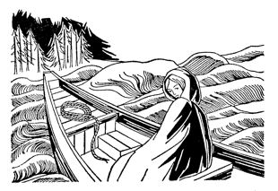 Odila marchó así hasta el Rhin, y allí, tuvo la suerte de encontrar a un pescador matutino que, pensando favorecer a una pobre sirvienta que iba a reunirse con sus amos, accedió a que atravesara el río en su barca: los puentes eran cosa rara en esta época.